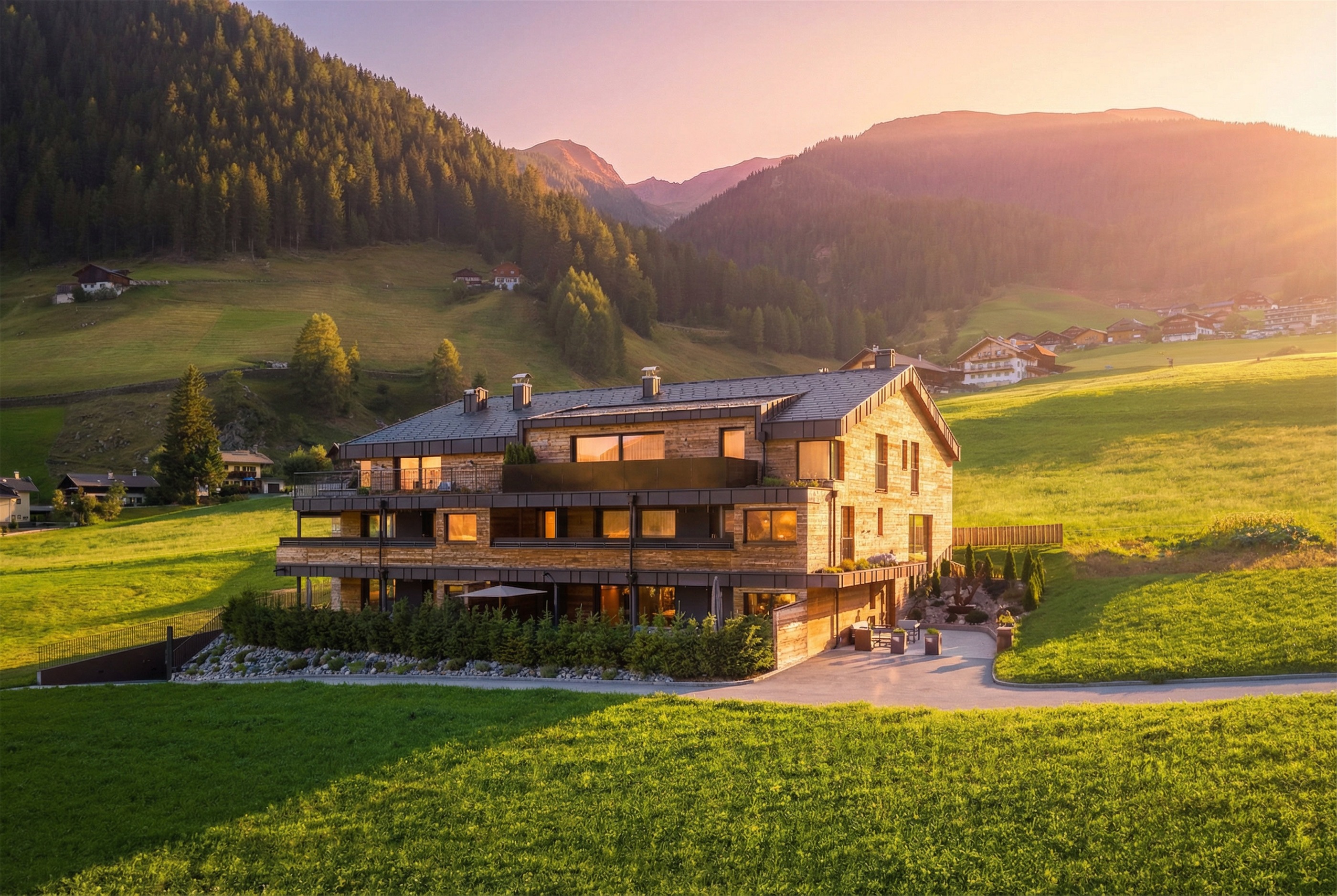 Nestled in the unspoilt Gsies Valley at 1,400 metres, Chalet Salena combines the freedom of a private retreat with five-star service. Seven exclusive Mountain Spa Chalets await you, each with its own outdoor hot tub and Swiss stone pine sauna. Every morning, breakfast is delivered directly to your chalet while the Dolomites unfold before you. Just a short walk away: 5,000 m² of wellness at Hotel Quelle.