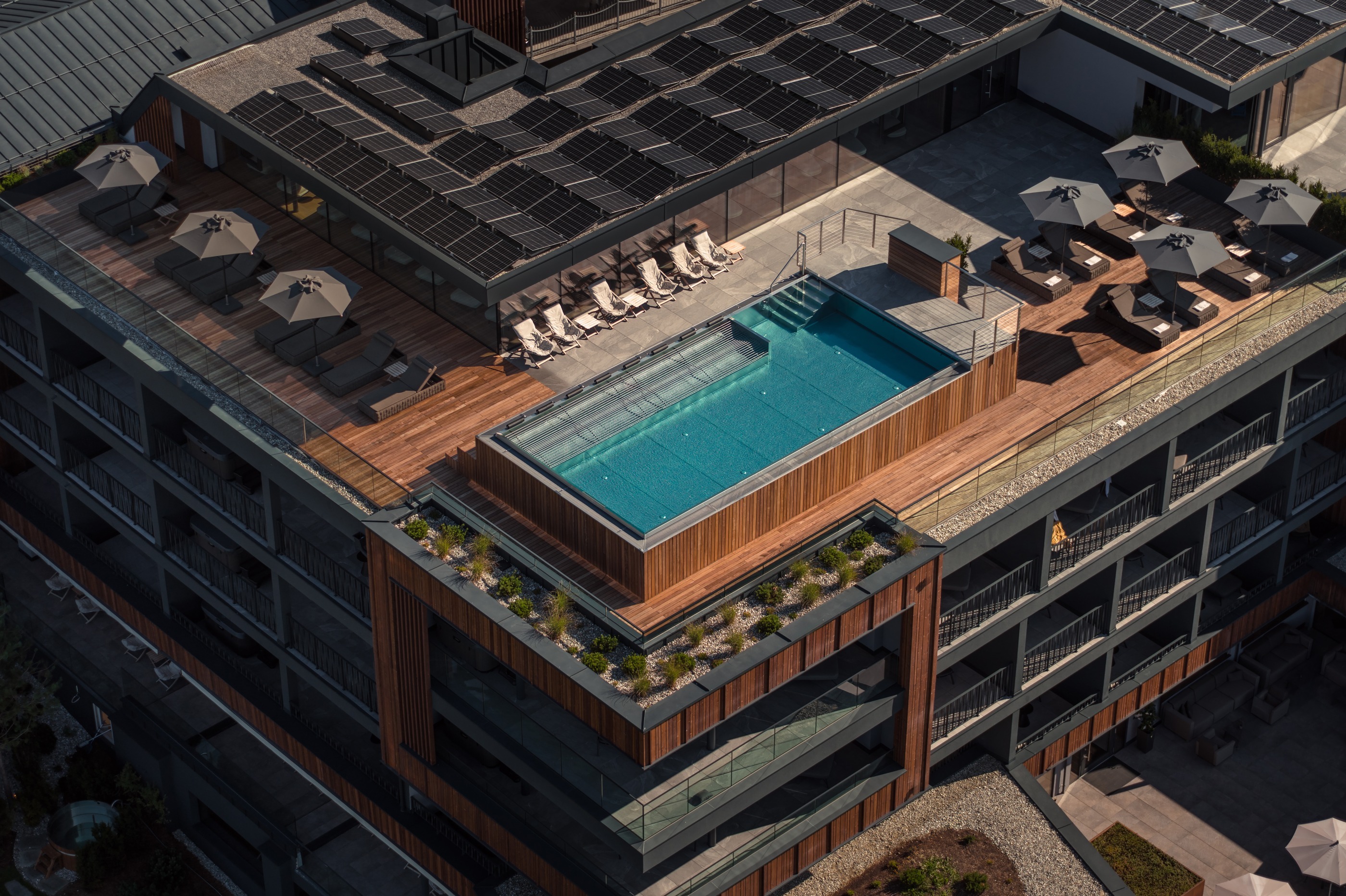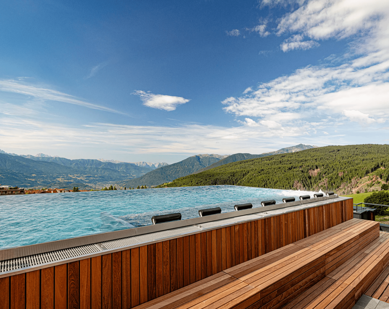 🏊♂️⛰️ Piscina infinity 18m vista Dolomiti: Nuotate verso l'orizzonte nella piscina esterna riscaldata a 1.450m - un'esperienza unica con vista panoramica sulle maestose cime delle Dolomiti patrimonio UNESCO.